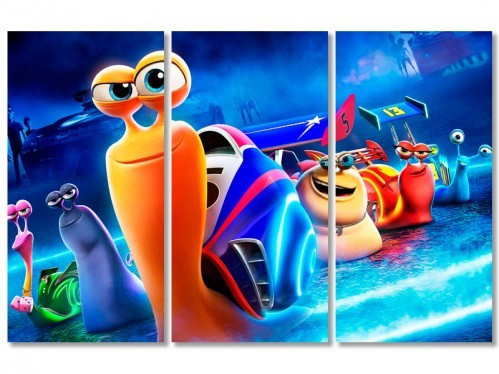Картина в детскую улитка из мультфильма "Турбо" Печать на холсте, в комплекте 3 модуля, общий габарит 90x60 см.