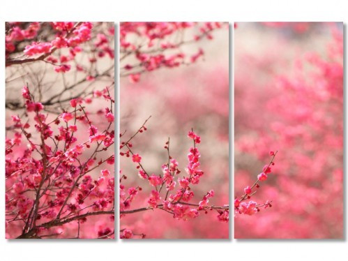 Модульная картина на холсте в комнату Розовый куст. Розовая сакура. Ветвь в цветах. Печать на холсте, в комплекте 3 модуля, общий габарит 90x60 см.